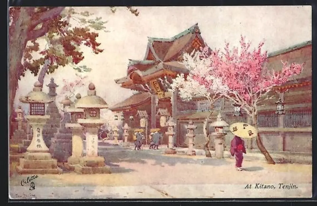 Künstler-AK Raphael Tuck & Sons Nr. 7916: Tenjin, at Kitano mit Kirschblüten