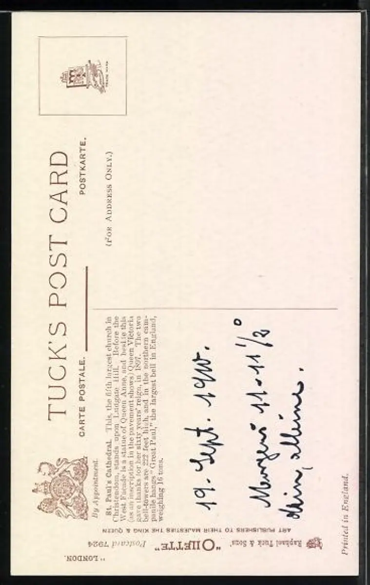 Künstler-AK Raphael Tuck & Sons Nr. 7924: London, St. Paul`s Cathedral