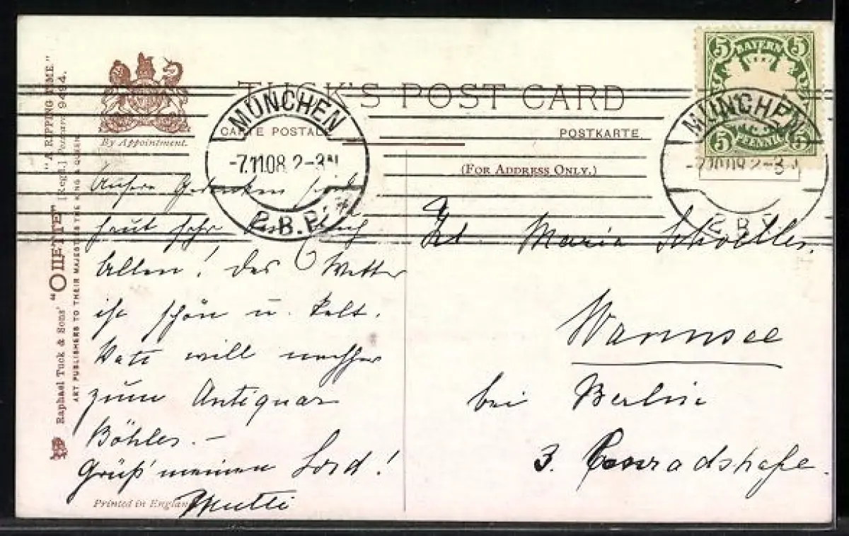 alte Ansichtskarte, gelaufen 1908, guter Zustand