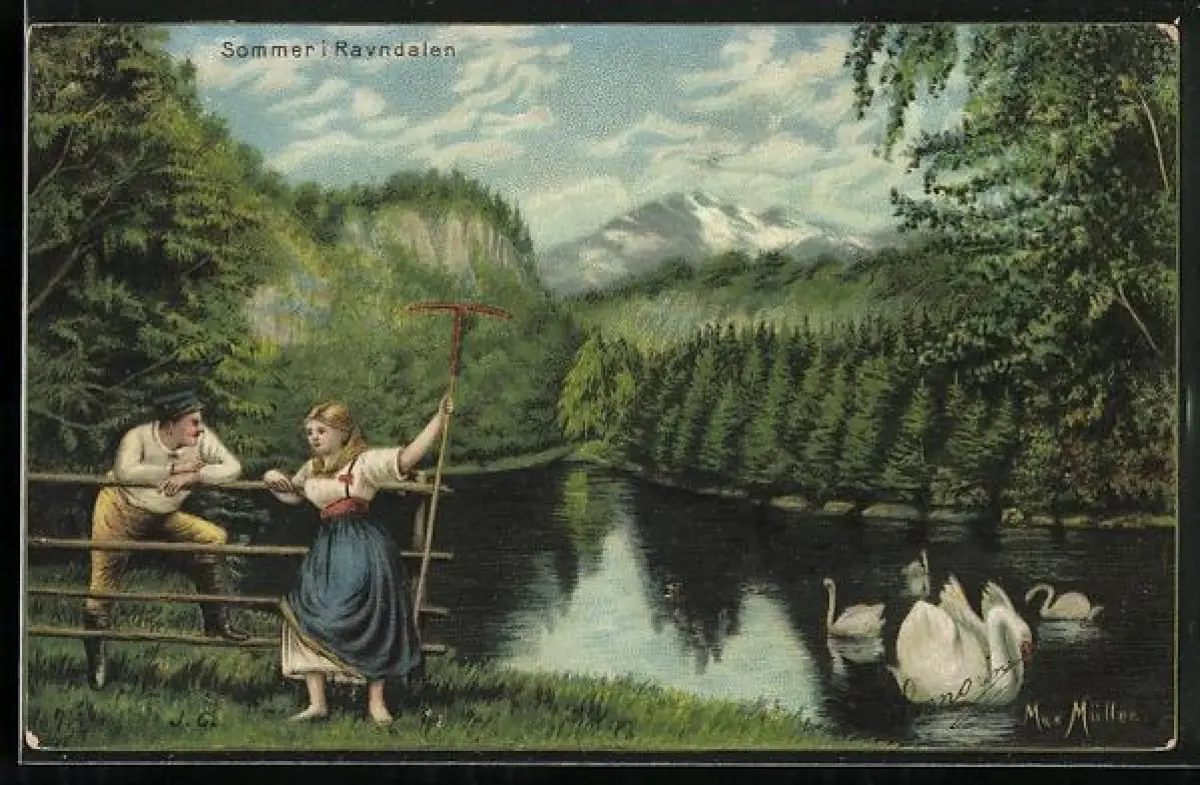 Künstler-AK Ravndalen, Sommer i Ravndalen
