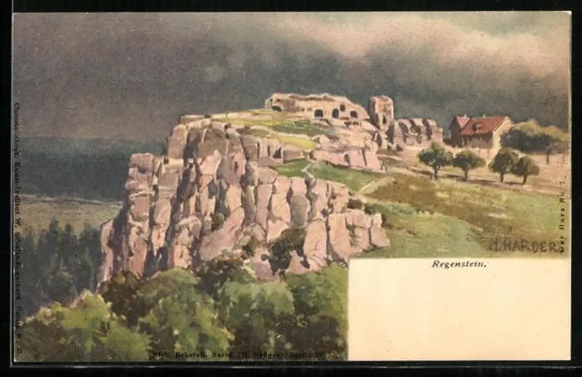 Künstler-AK Regenstein, Blick auf Burg Regenstein