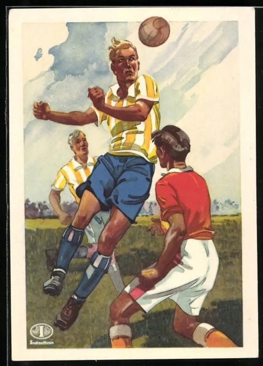 Künstler-AK Reklame Indanthren-Stoffe - Fussballer im indanthrenfarbigen Dress