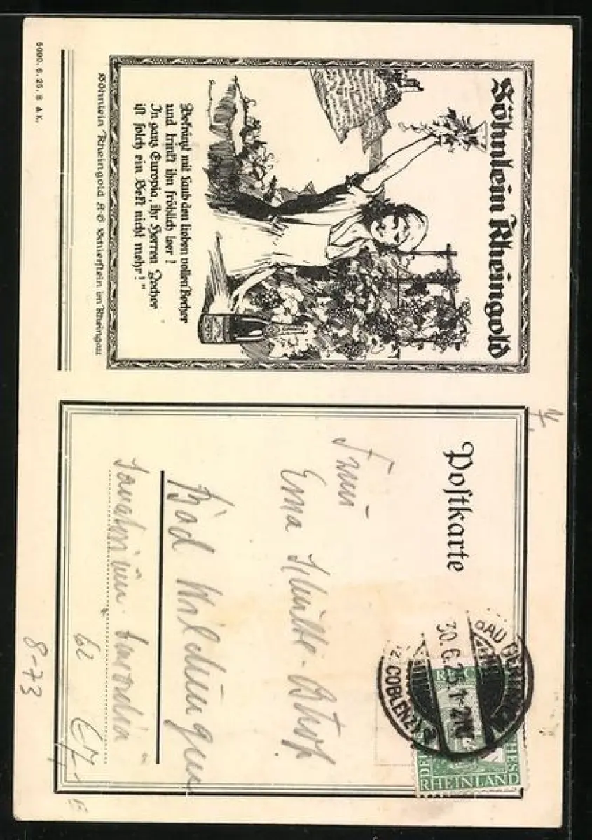 Künstler-AK Reklame Söhnlein Rheingold Wein