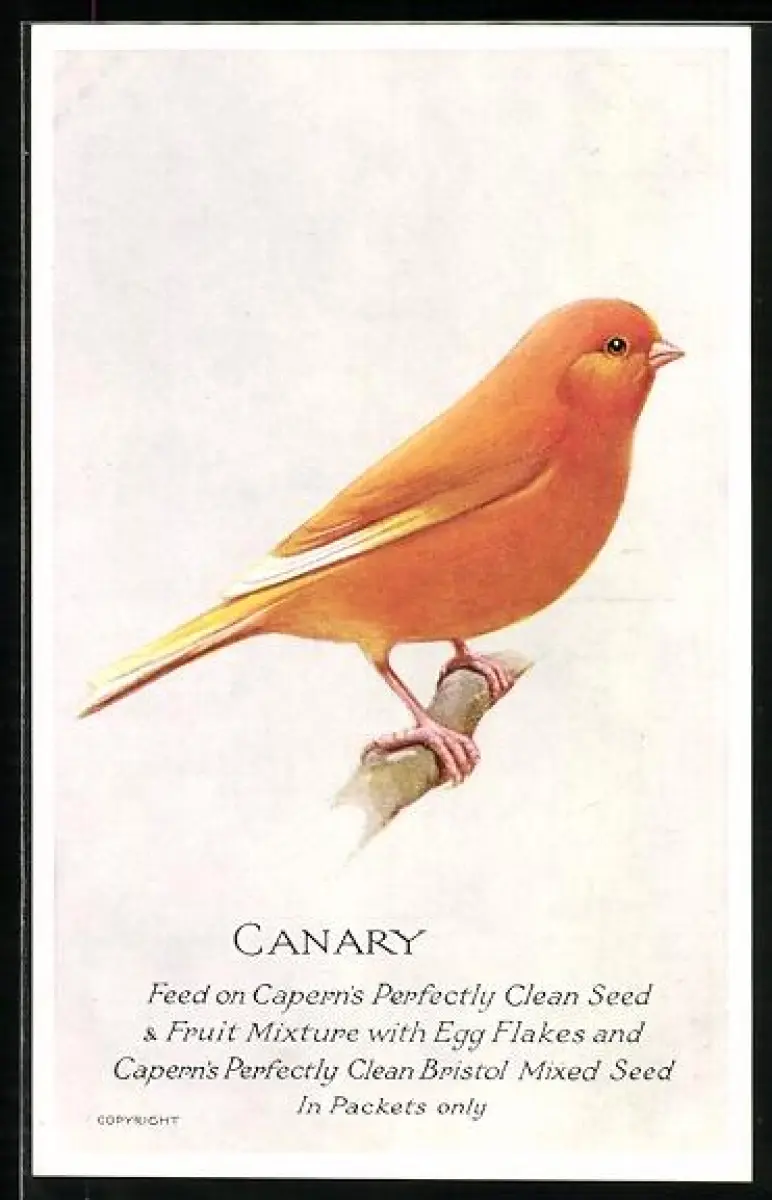 Künstler-AK Reklame für Capern's Perfectly Clean Seed & Fruit Mixture, Caranry, Kanarienvogel