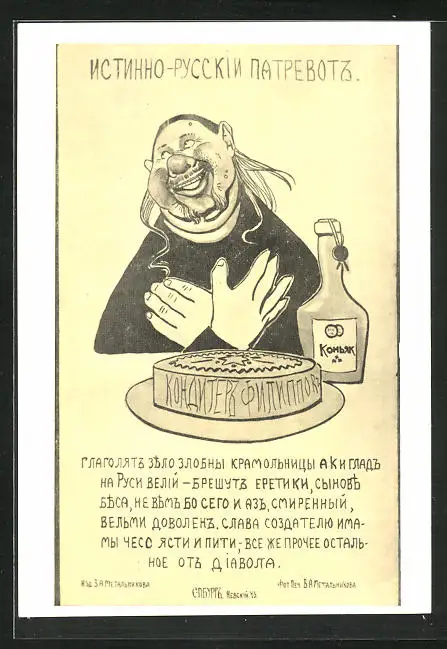 Künstler-AK Revolution 1905, Echter Russischer Patriot, Kognac-Flasche, Arbeiterbewegung