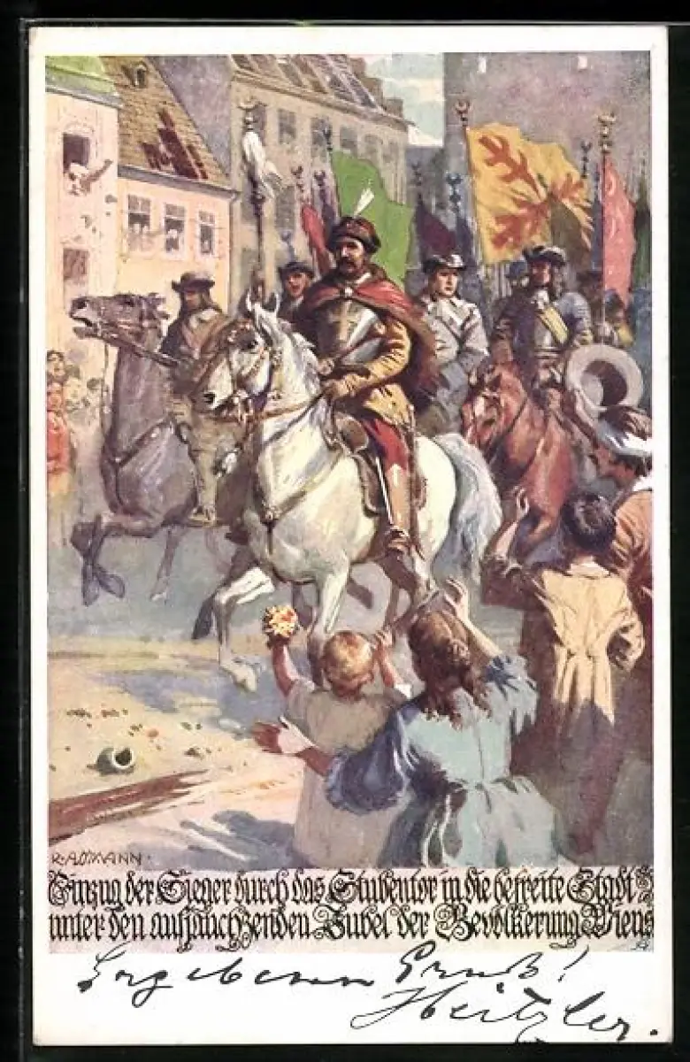Künstler-AK Richard Assmann: Einzug der Sieger in die befreite Stadt, türkische Belagerung