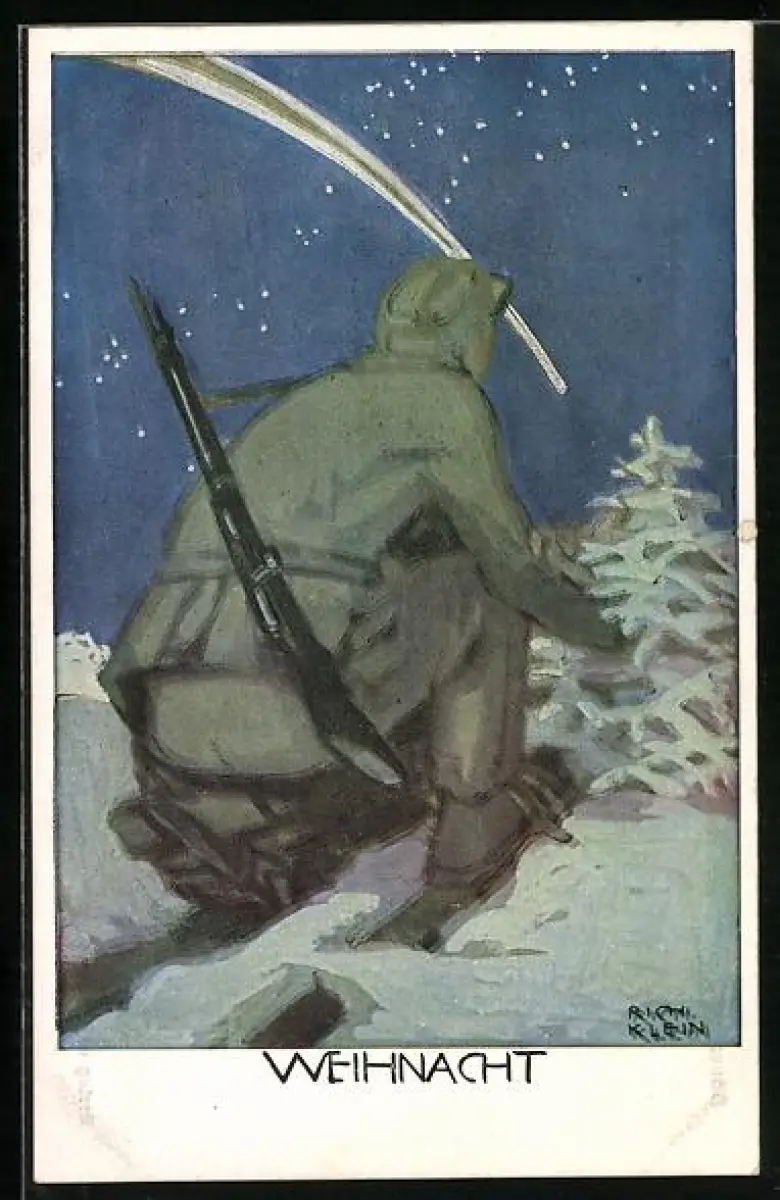Künstler-AK Richard Klein: Soldat auf Skiern