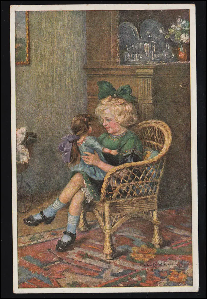 Künstler-AK Rob. Völcker: Mein Liebling - Mädchen mit Puppe, ungebraucht