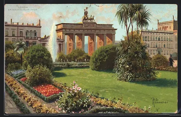 Künstler-AK Robert Kämmerer: Berlin, Grünanlage mit Brunnen vor Brandenburger Tor