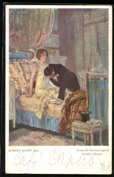 Künstler-AK Robert Schiff: Modere Barmherzigkeit, Mann pflegt seine Liebste am Bett