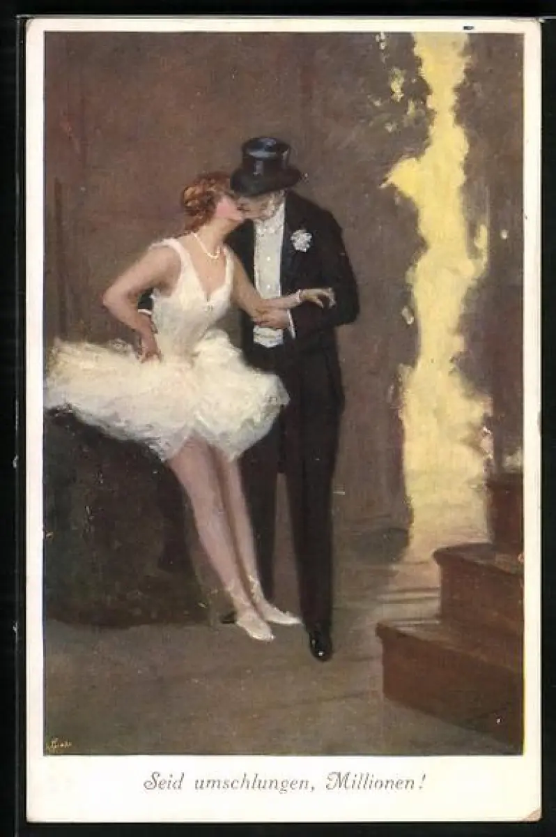 Künstler-AK Robert Schiff: Seid umschlungen, Millionen! Herr mit Zylinder küsst Tänzerin