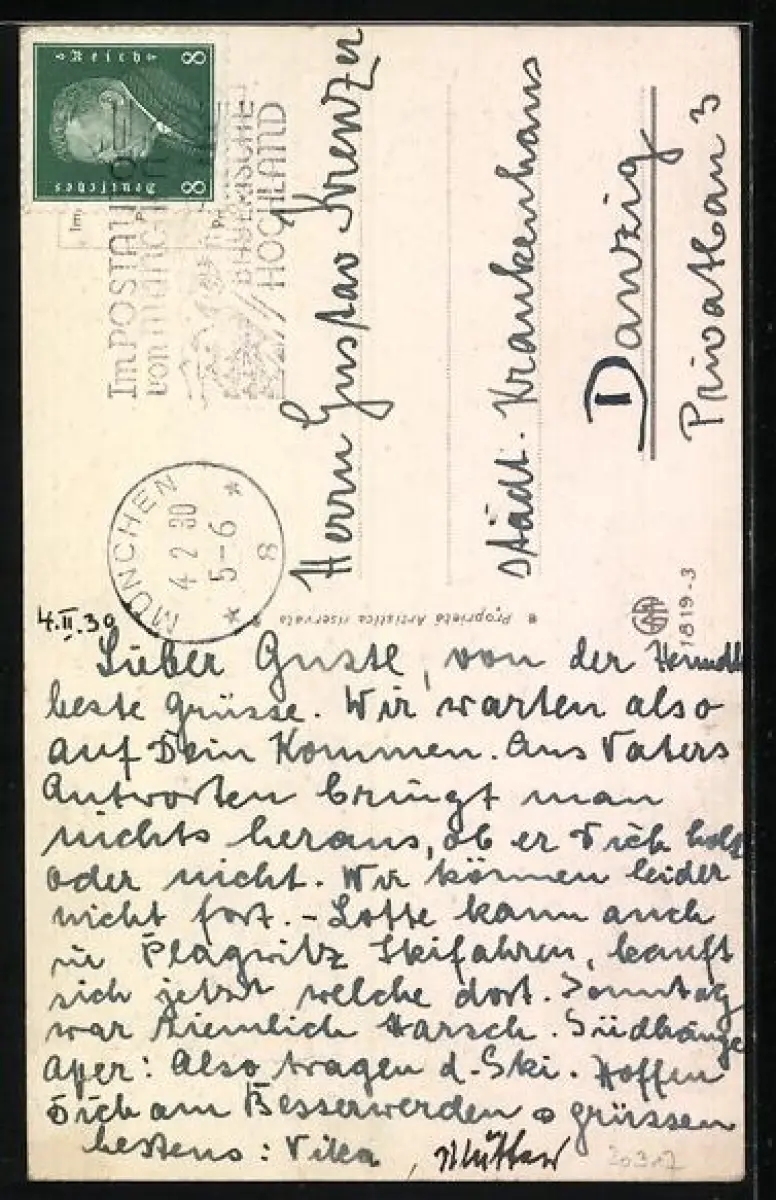 alte Ansichtskarte, gelaufen 1930, Stempelspur, guter Zustand
