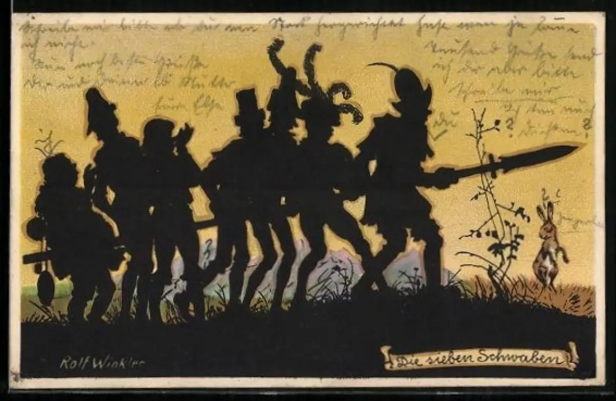 Künstler-AK Rolf Winkler: Silhouette aus dem Märchen die sieben Schwaben
