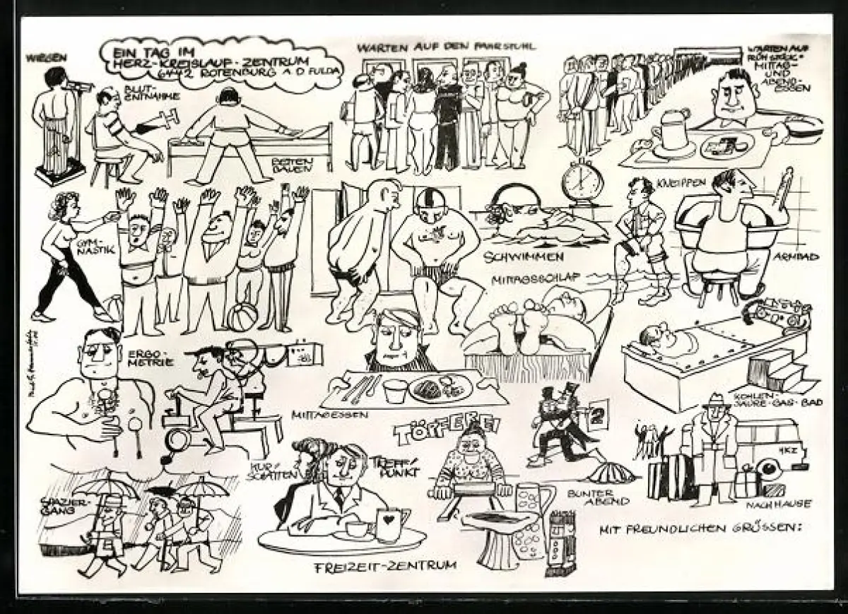 Künstler-AK Rotenburg a. d. Fulda, Herz- und Kreislaufzentrum, Aufenthaltsablauf