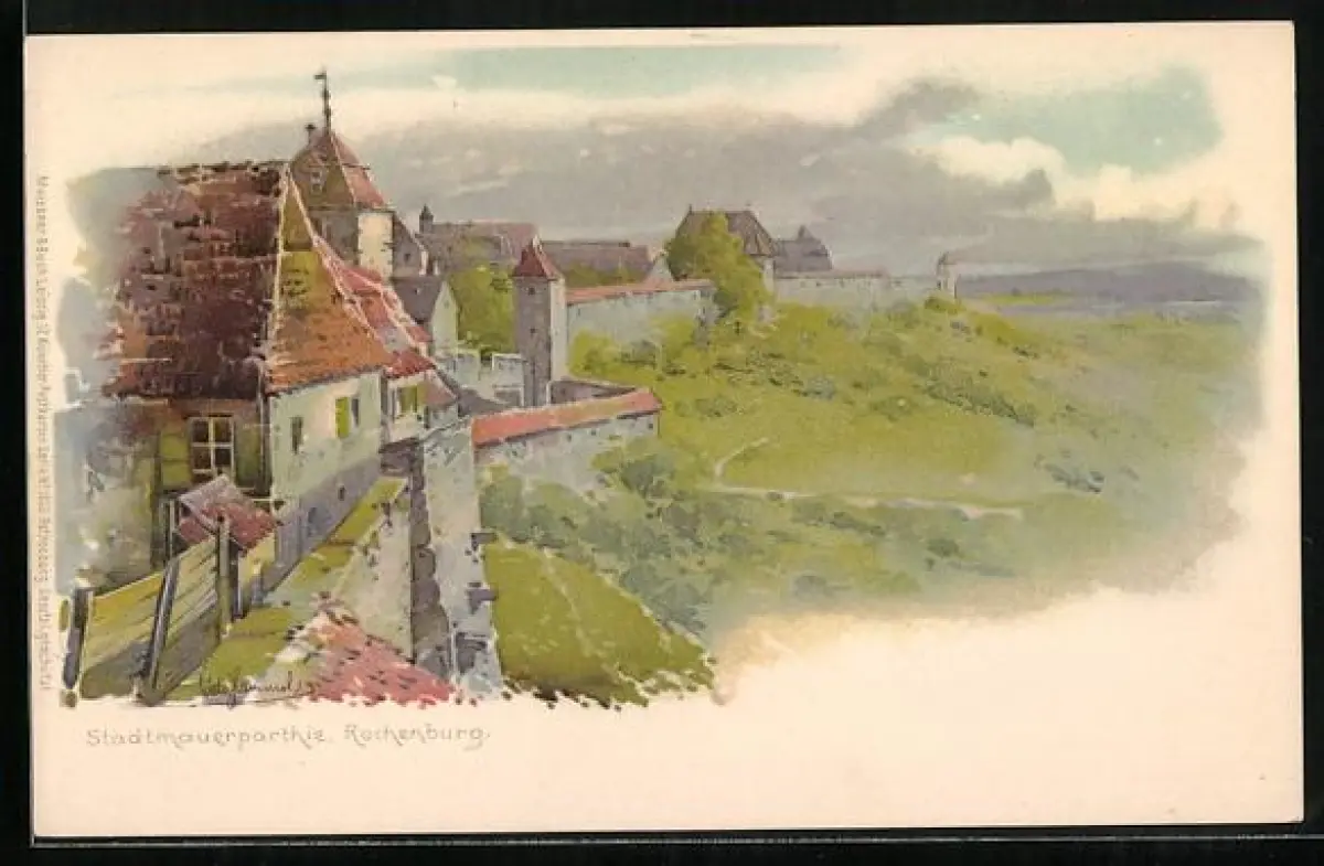 Künstler-AK Rothenburg / Tauber, Stadtmauerpartie