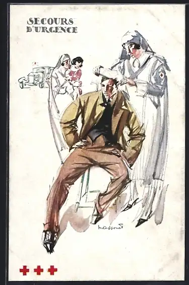 Künstler-AK Rotkreuzschwester verbindet einen Mann