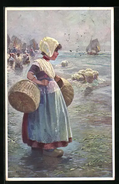 Künstler-AK Rudolf Alfred Höger: Mädchen am Strand mit Körben