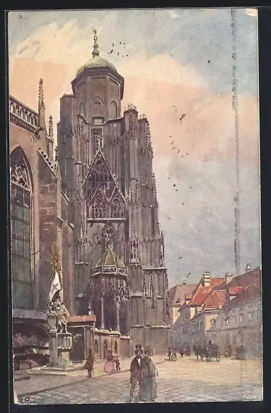 Künstler-AK Rudolf Preuss: Wien, Der unausgebaute Turm der Stephanskirche