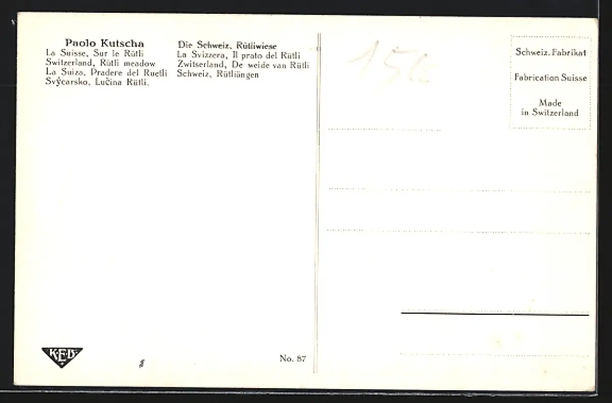 Künstler-AK Rütli, Die Schweiz, Rütliwiese