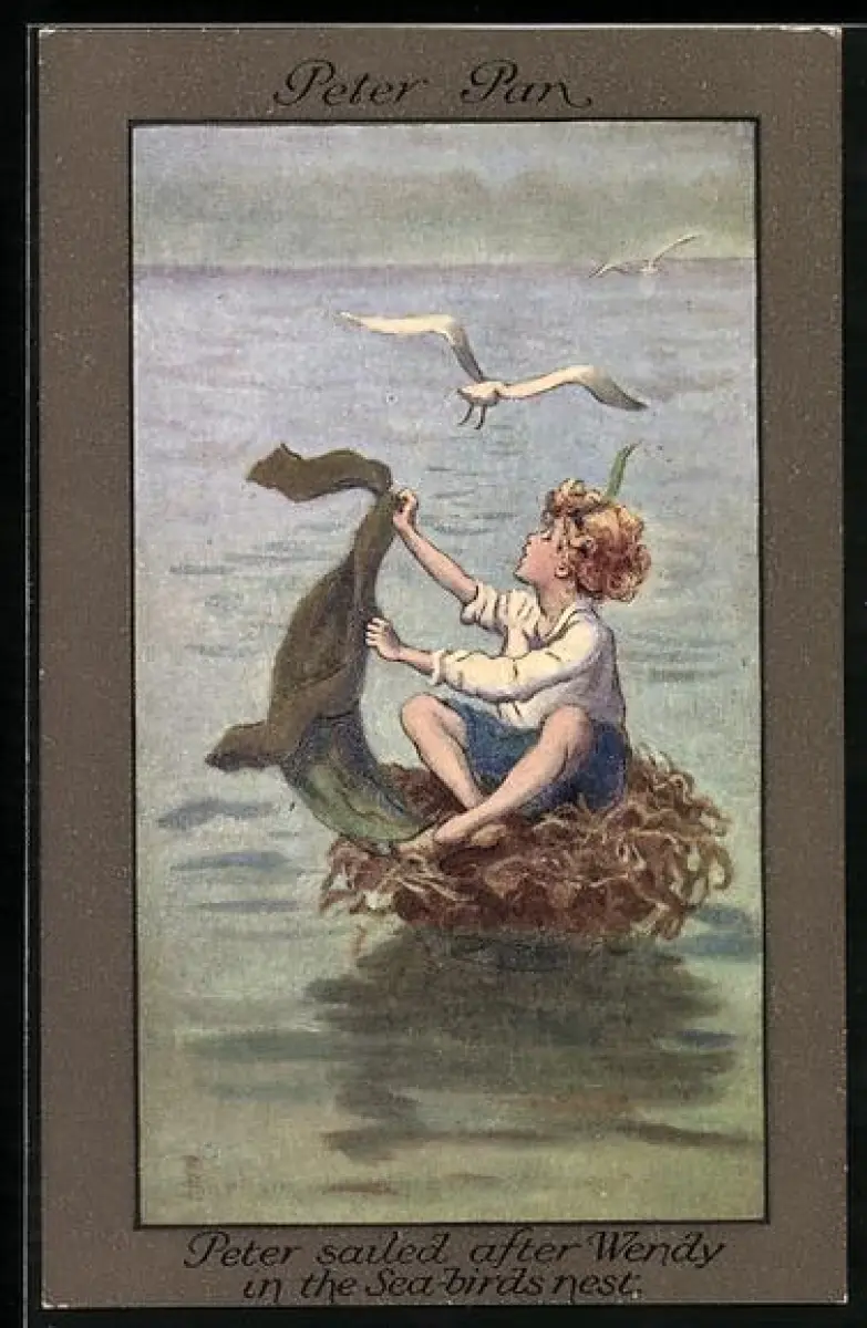 Künstler-AK S. Barham: Peter sailed after Wendy in the sea-birds nest