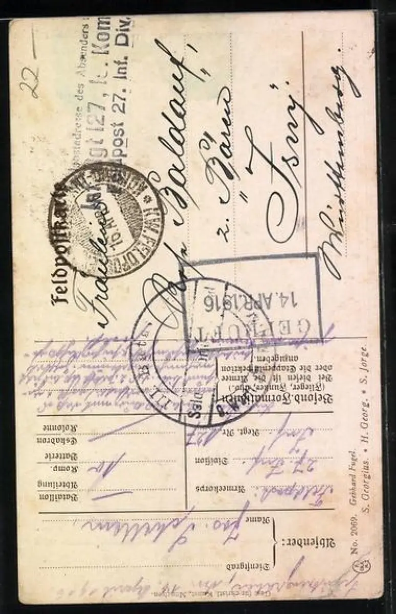 gelaufen 1916, Eckknick unten li., guter Zustand
