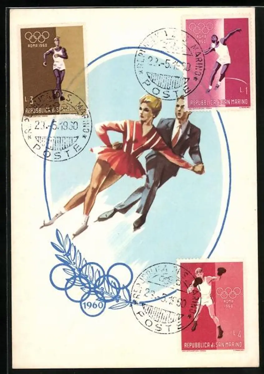 Künstler-AK San Marino, Giochi della XVII. Olimpiade 1960, Pattinaggio