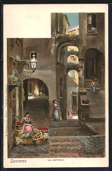 Künstler-AK San Remo, Obstverkäuferin in der Via Capitolo