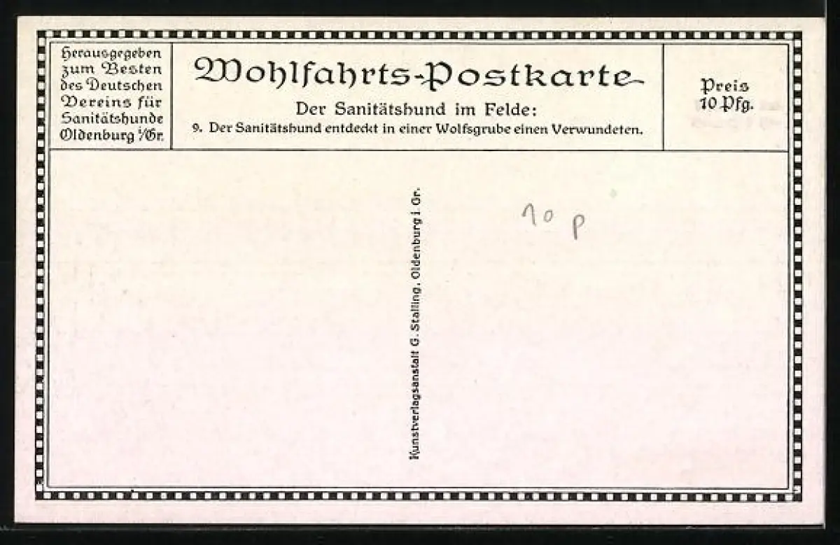 Künstler-AK Sanitätshund entdeckt einen Verwundeten in einer Wolfsgrube