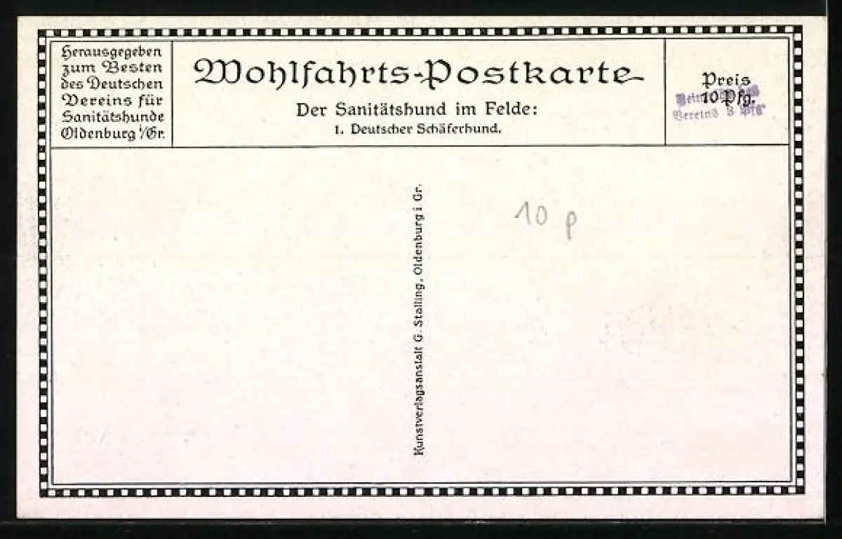 Künstler-AK Sanitätshund im Felde, 1. Deutscher Schäferhund
