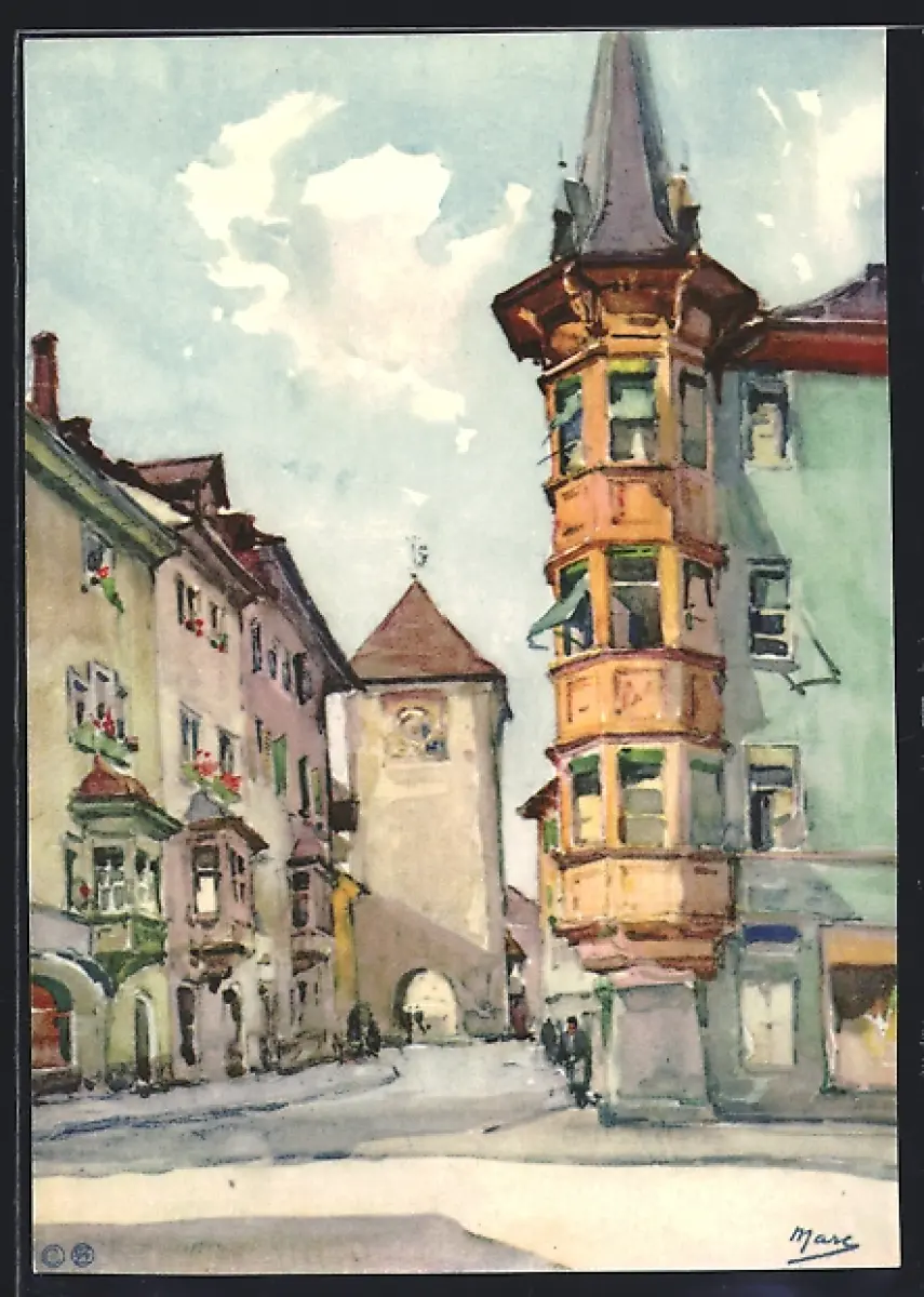 Künstler-AK Schaffhausen, Strassenpartie mit Blick nach dem Schwabentor