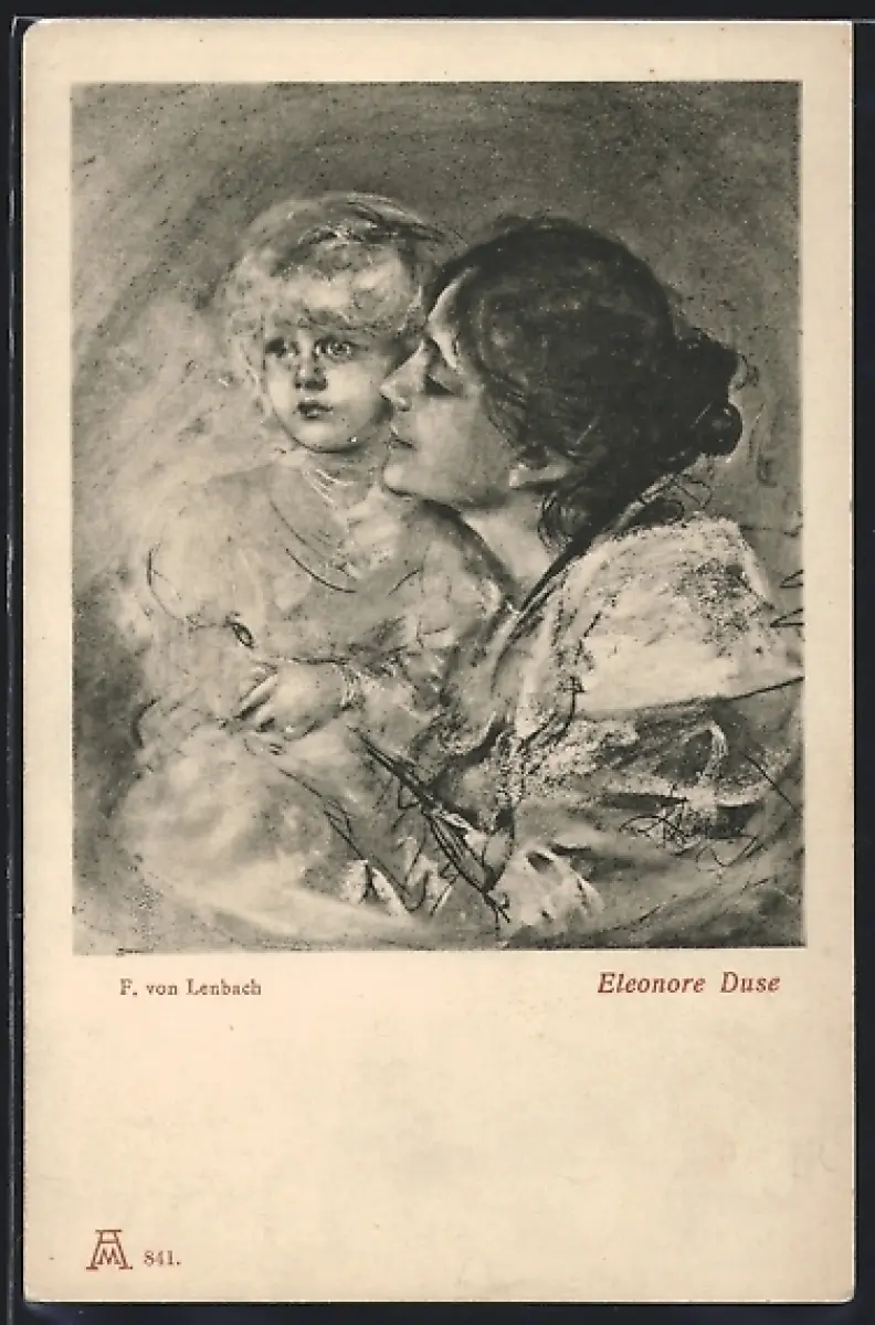 Künstler-AK Schauspielerin Eleonore Duse mit Kind
