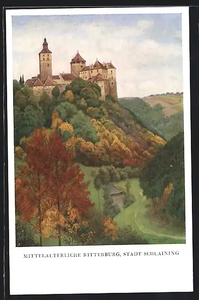 Künstler-AK Schlaining, Mittelalterliche Ritterburg, herbstliche Ansicht