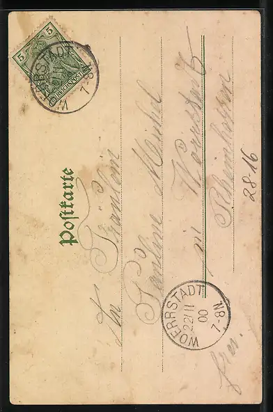alte Ansichtskarte, gelaufen 1900, guter Zustand