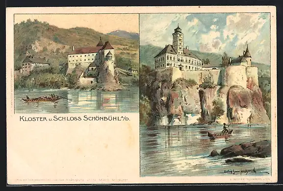Künstler-AK Schönbühel an der Donau, Blick auf das Schloss
