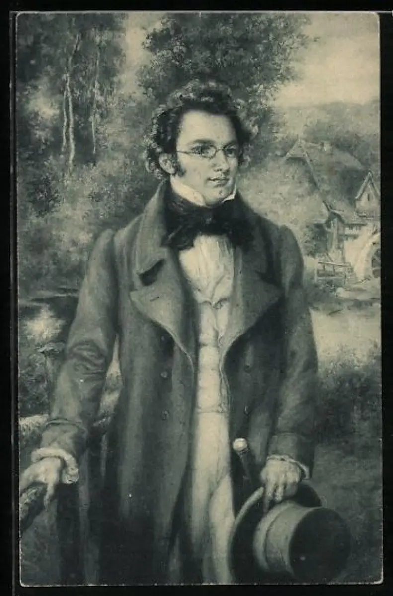 Künstler-AK Schubert im Garten vor einer Mühle