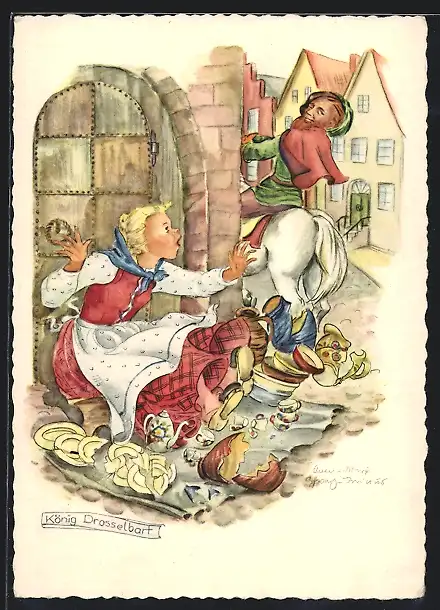Künstler-AK Schwarz-Torino: König Drosselbart erschreckt Frau mit Geschirr