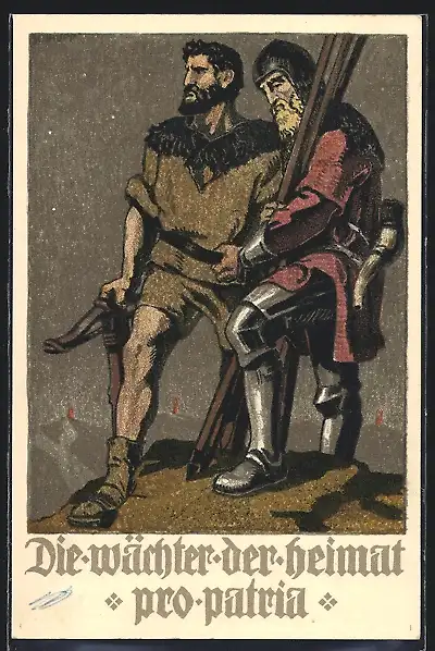 Künstler-AK Schweizer Bundesfeier 1910, Die Wächter der Heimat