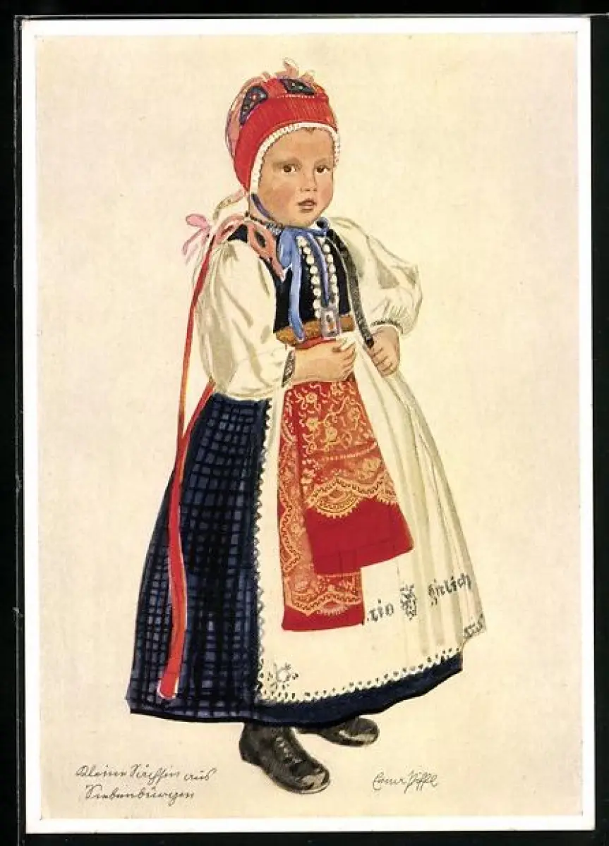 Künstler-AK Siebenbürgen, Kleine Sächsin in Tracht