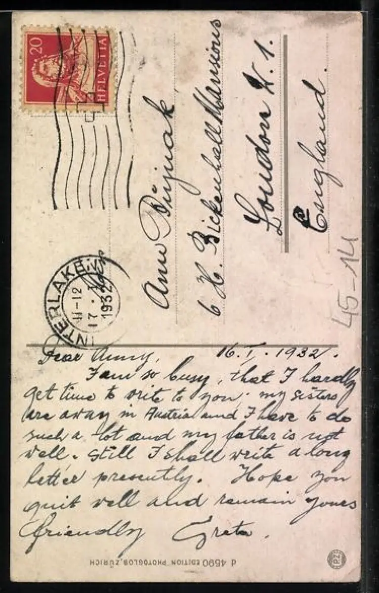alte Ansichtskarte, gelaufen 1932, Eckknick li. unten, guter Zustand
