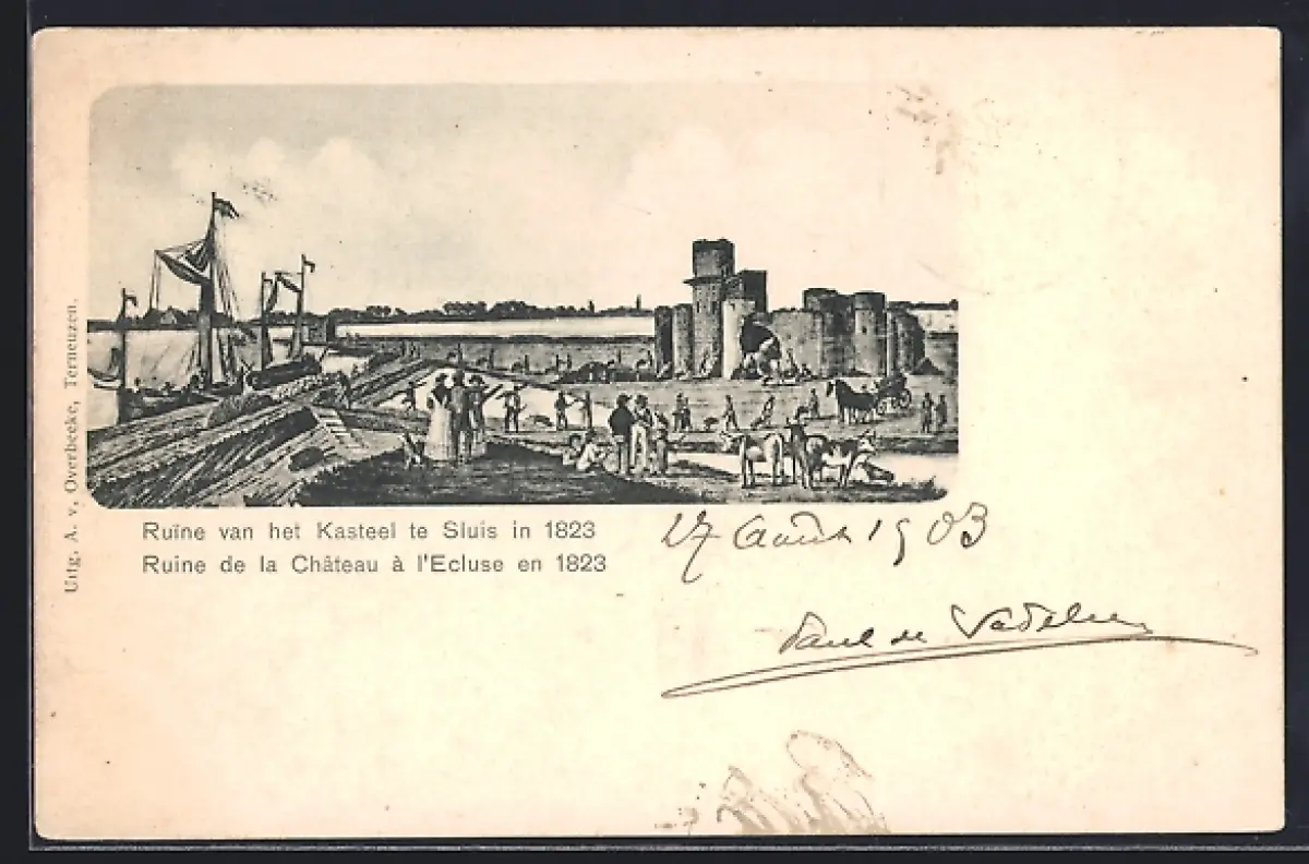 Künstler-AK Sluis, Ruine van het Kasteel te Sluis in 1923