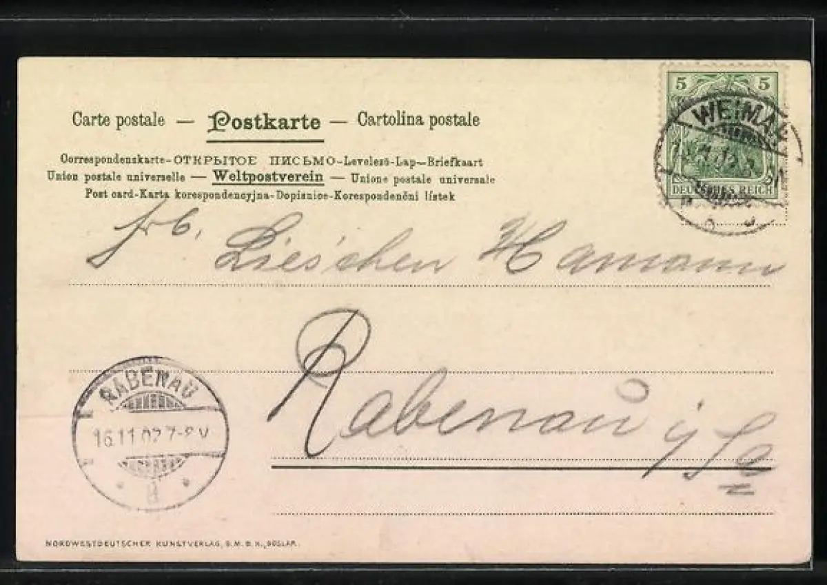 alte Ansichtskarte, gelaufen 1902, Eckknick li. oben, guter Zustand
