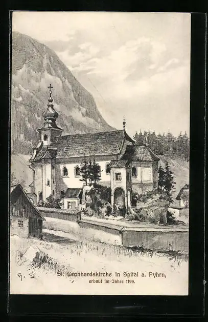 Künstler-AK Spital a. Pyhrn, St. Leonhardskirche