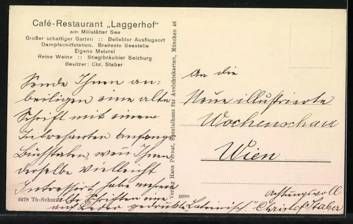 Künstler-AK Spittal an der Drau, Cafe Restaurant Laggerhof am Millstätter See, Inh. Chr. Staber