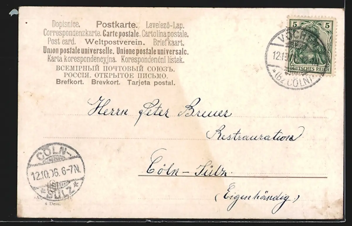 alte Ansichtskarte, gelaufen 1906, Abriebspur oben re., Stempelspur, guter Zustand