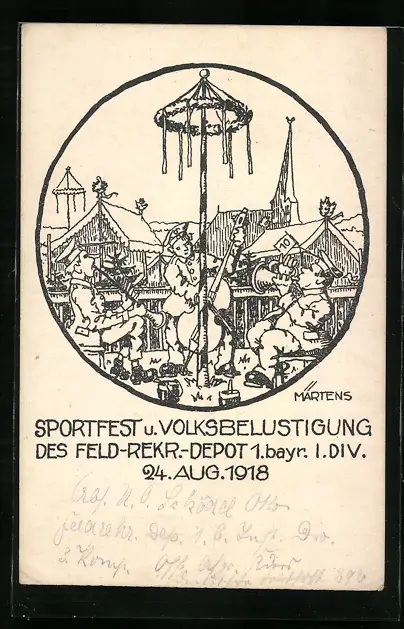 Künstler-AK Sportfest und Volksbelustigung des Feld-Rekr.-Depot 1. bayr. I. Div. am 24. August 1918