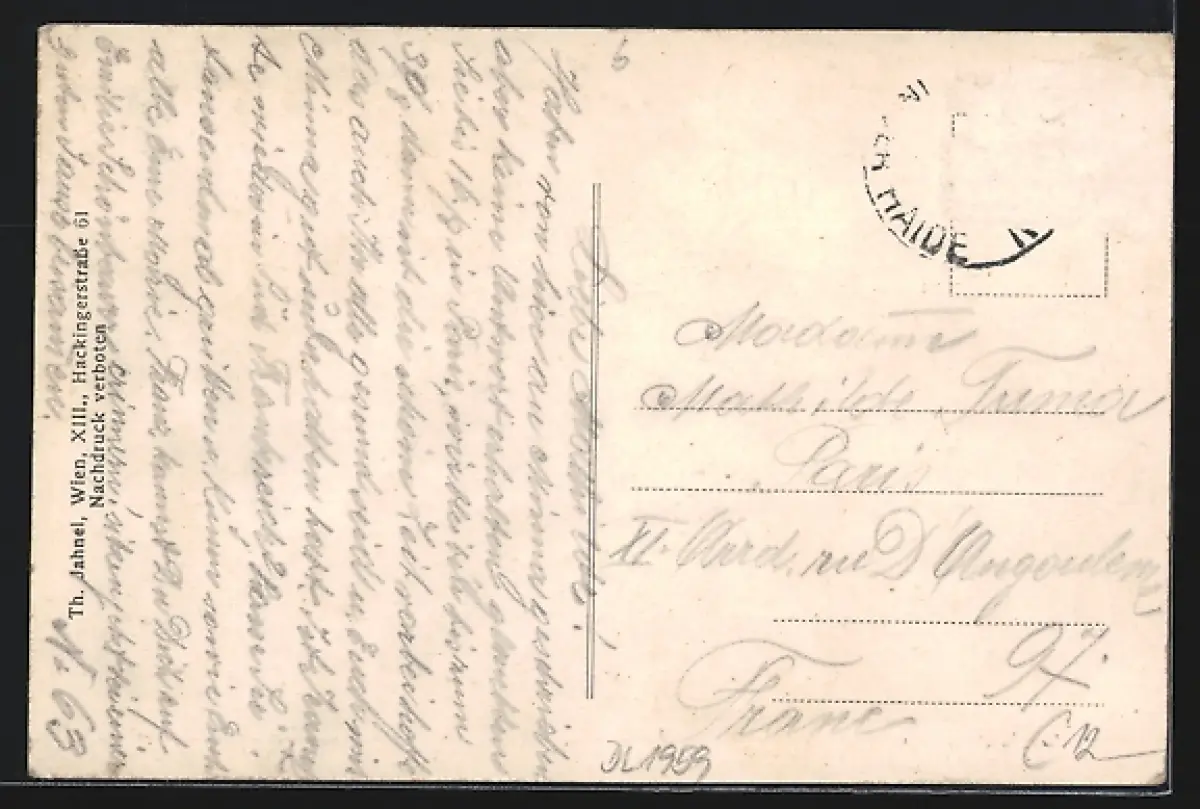 alte Ansichtskarte, gelaufen, Briefmarke entfernt, rückseitig Oberflächenschaden, guter Zustand