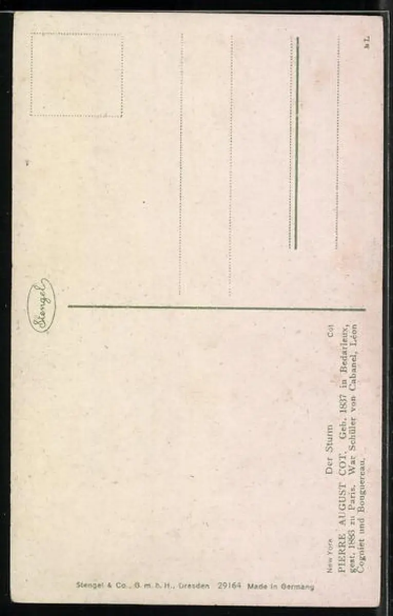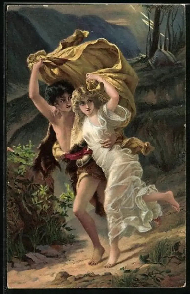 Künstler-AK Stengel & Co. Nr. 29164: Der Sturm, Liebespaar sucht Schutz vor Gewitter