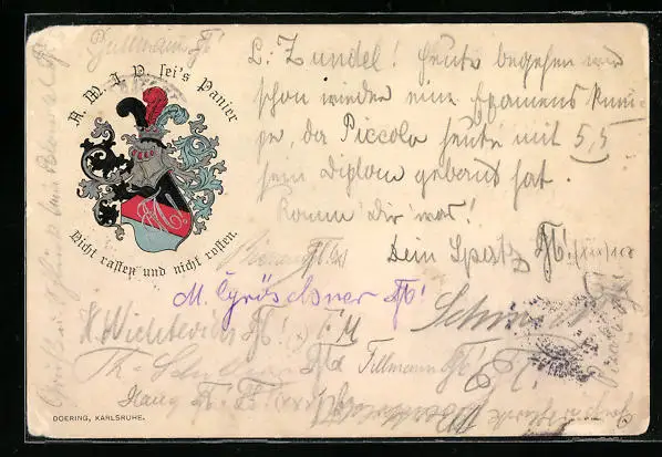 Künstler-AK Studentenwappen, A. M. I. D. sei`s Panier