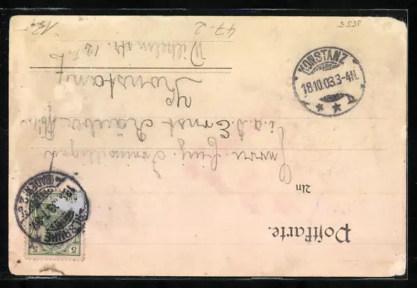 alte Ansichtskarte, gelaufen 1903, Ecken bestoßen, Eckknick oben rechts, guter Zustand