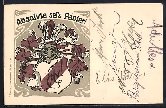 Künstler-AK Studentenwappen mit Ritterhelm, Absolvia sei`s Panier